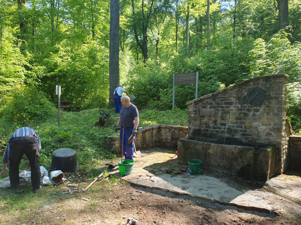 Nach dem Trocknen wird noch etwas Material aufgefüllt, dann kann der Brunnen wieder genutzt werden. Und natürlich gab es nach getaner Arbeit eine gute Verpflegung für die Helfer.