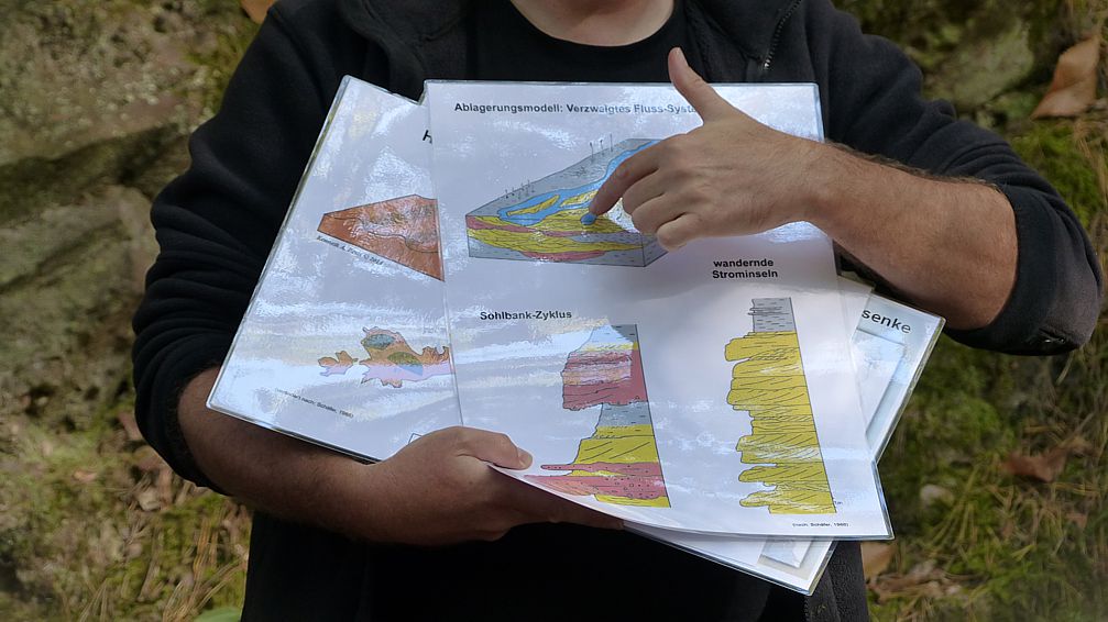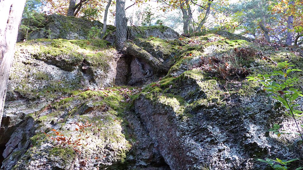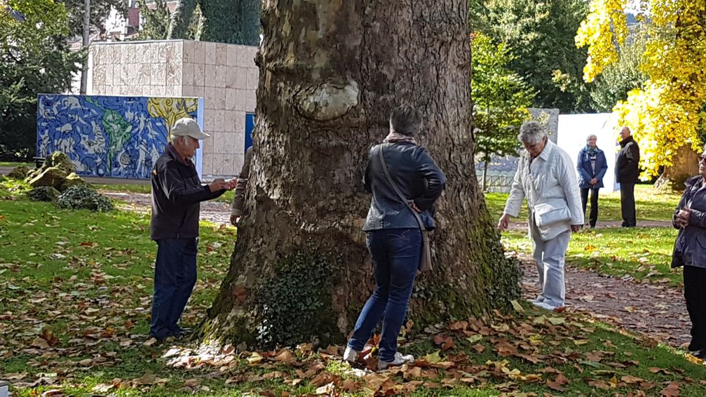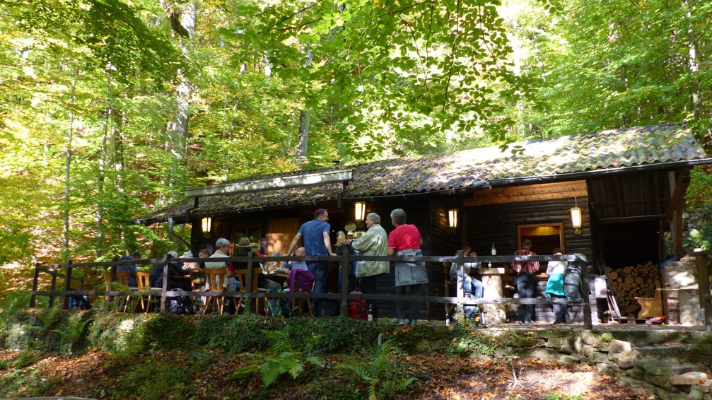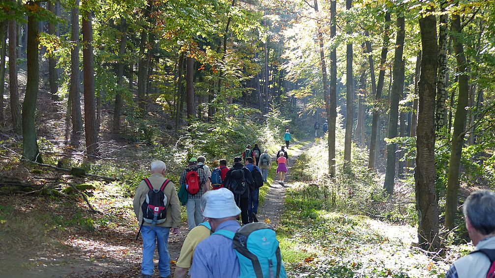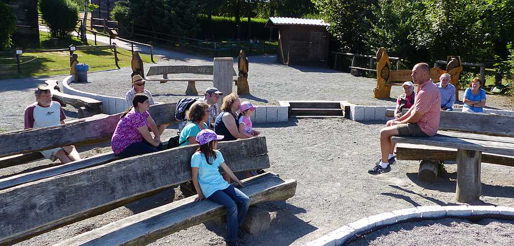 Zu Mittag wurde mit Börfink im Herzen des neuen Nationalparks Hunsrück Hochwald das zweite Ziel der Exkursion erreicht. Nachdem im dortigen Forellenhof Trauntal ein Mittagessen eingenommen worden war, übernahm Dr. Ernst Segatz die weitere Führung. Segatz ist Mitarbeiter der Forschungsanstalt für Waldökologie und Forstwirtschaft in Trippstadt und der Nationalparkverwaltung. Bei einer Wanderung rund um den Ortsteil Thranenweier, der sogenannten Inseltour, ging Segatz der Frage nach, wie Naturschutz in dem erst 2015 gegründeten Nationalpark gestaltet und entwickelt werden kann. Soll man die Natur sich völlig frei entfalten lassen oder muss der Mensch zumindest für eine Übergangsszeit regulierend eingreifen? Der Nationalpark ist mit ca. 11.000 ha nicht sehr groß, gehört zum größten Teil zu Rheinland-Pfalz und mit einem kleinen Teil zum Saarland. Er besitzt eine längliche Form, so dass er an manchen Stellen nur ca. 5 km breit ist, was für die Verfolgung des Naturschutzes nicht unbedingt förderlich ist.. Seine Gründung geschah nicht im luftleeren Raum, sondern war nur in Abstimmung mit den unterschiedlichsten Gruppen und Interessen möglich wie den Kommunen, dem Tourismus, den Jägern, der Forstwirtschaft und den privaten Holznutzern, um nur wenige zu nennen. Es versteht sich aber von selbst, dass der Naturschutz das vordringliche Ziel des Nationalparks ist. Kurz nach seiner Gründung ist es notwendig, früher vorgenommene schädliche Eingriffe des Menschen wie die Entwässerung von Mooren zu beseitigen, um den ursprünglichen naturnahen Zustand wiederherzustellen. In dieser Hinsicht ist der Nationalpark erst noch in der Entwicklung.