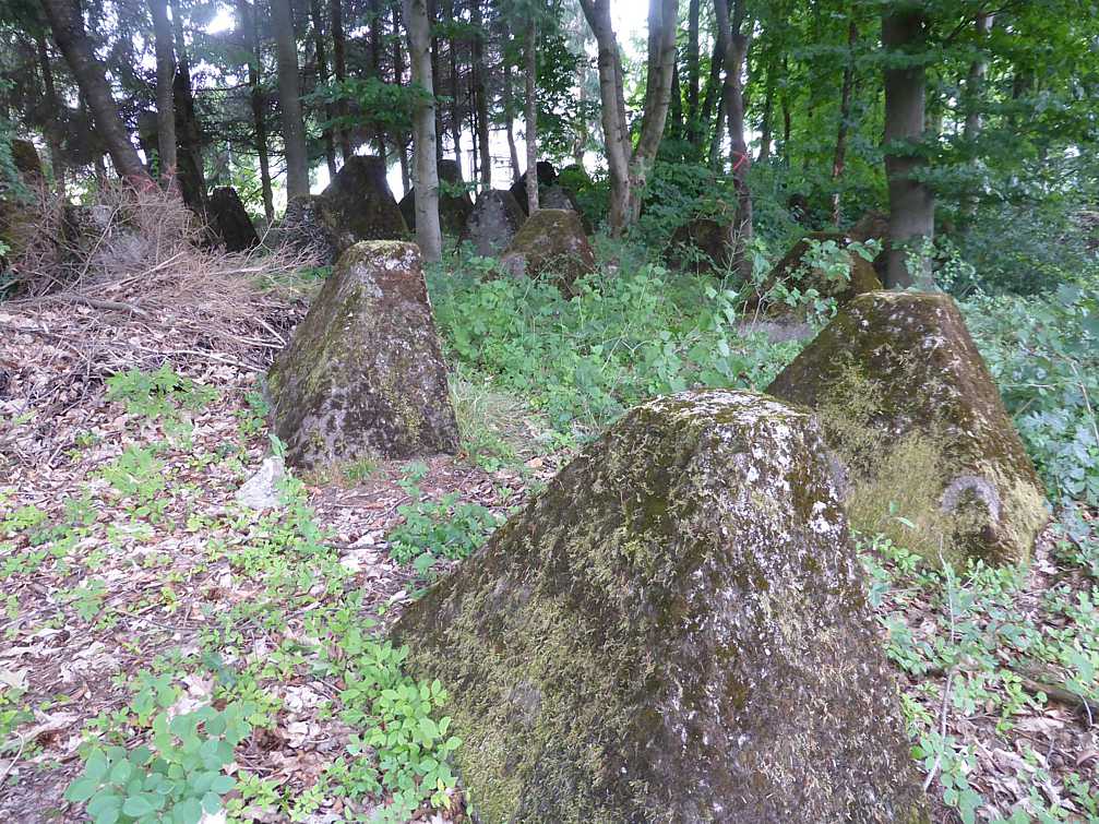 Unmittelbar neben dem Parkplatz eines Einkaufszentrums in Nonnweiler, aber auch außerhalb des Ortes in der näheren Umgebung machte er auf Panzersperren aufmerksam, die zumeist durch grüne Büsche und Bäume verdeckt sind und dem normalen Passanten kaum auffallen. Auch wies er auf Bunker hin, die in entlegenen Waldstücken, aber auch in Dörfern zu finden sind, wo sie begrünt sind und zum Teil als Fundament für Häuser genutzt werden. Die Panzersperren bestehen aus mehreren Reihen von armierten Betonhöckern, die bis zu 1,50 m hoch und in einem Betonbett verankert sind und laut Militärtechnik der dreißiger Jahre des 20. Jahrhunderts die Panzer an der Durchfahrt hindern sollten. Wijnands erläuterte sehr anschaulich, warum sich diese Anlagen nicht nur direkt an der Grenze zu Frankreich, sondern auch ca. 50 km von derselben enfernt wie in Nonnweiler befinden. Im Gegensatz zur Heeresleitung bestand die Luftwaffe darauf, dass auch ihre Stellungen und Flugplätze im Hinterland geschützt würden. Nach dem Krieg war es ein Hauptziel der Politik, diese Zeugnisse des Nazi-Militarismus zu vernichten. Dies gestaltete sich aber wegen der Unmengen an verbautem Beton als sehr aufwändig und teuer, so dass noch viele Exemplare erhalten sind.