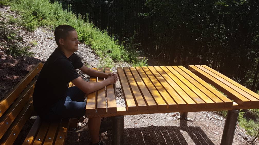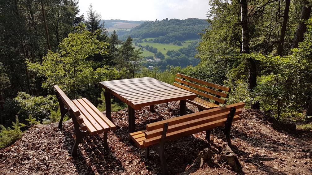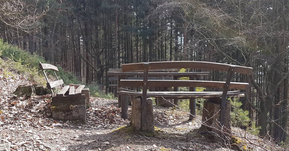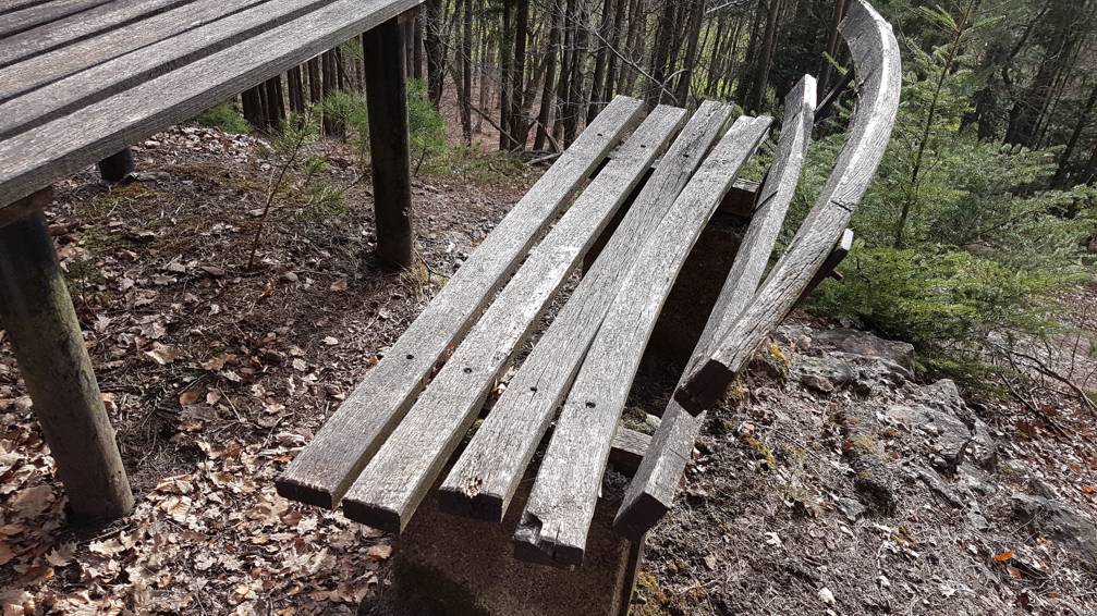 Noch im Frühjahr sah es dort so aus. ![]() ![]() Die Sitzgruppe zwischen Buchwaldhütte und Altenburg war schon etwas in die Jahre gekommen ...