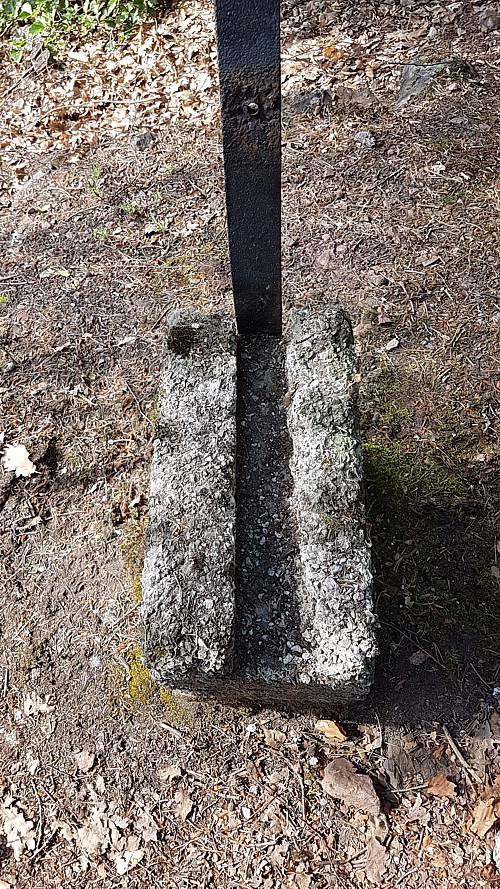 ![]() ![]() Anschließend wurden die Fundamentgräben nivelliert und verdichtet, so dass die Fertigfundamente montiert werden konnten. Die jeweils 110 kg schweren Fundamentblöcke mussten aber noch zu Fuß an ihren Platz gebracht werden.