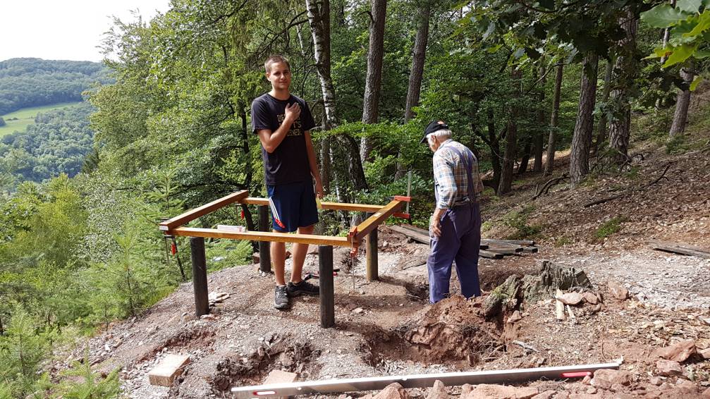 Besonderer Dank an Lukas und Ernst Niebergall ohne deren unermüdlichen Einsatz die Baumaßnahme noch lange nicht fertig wäre. Allen Helfern, die Materialien organisiert haben oder Fahrdienste übernommen haben, sei ebenfalls ausdrücklich gedankt. Dank auch an die Ortsgemeinde Theisbergstegen für die materielle Unterstützung und dem Pfälzerwaldverein Theisbergstegen/Godelhausen für eine finanzielle Beteiligung an den Materialkosten. |