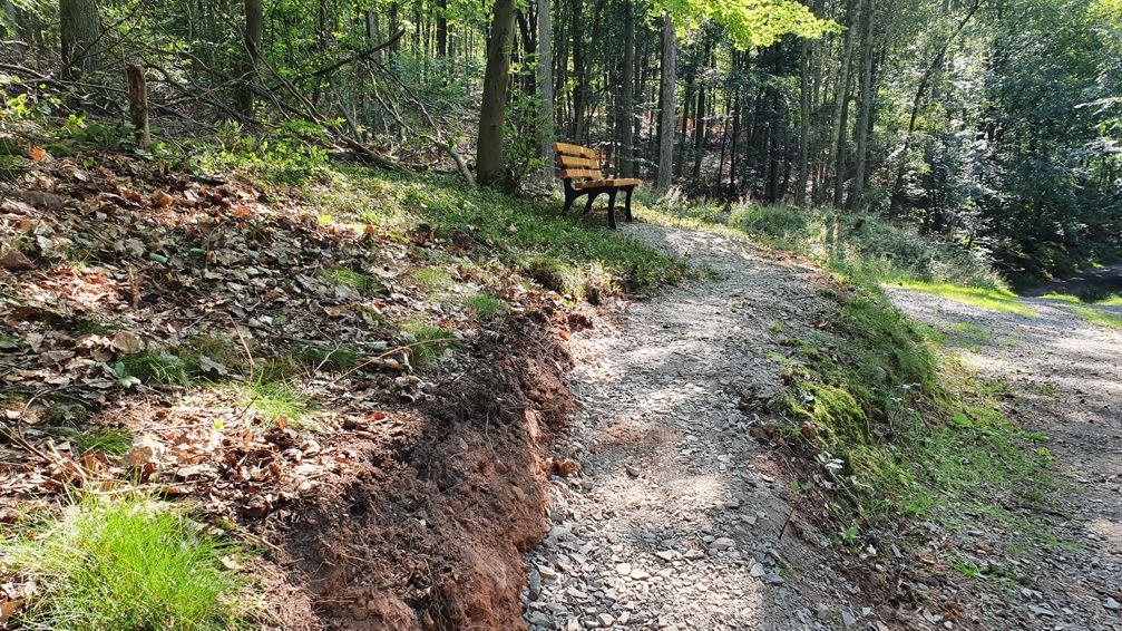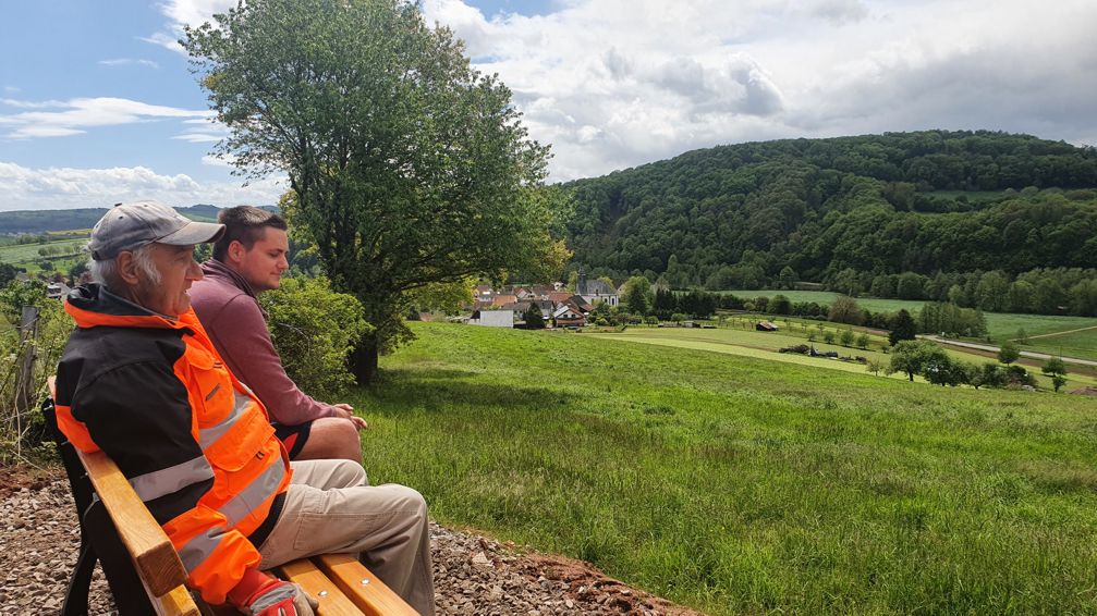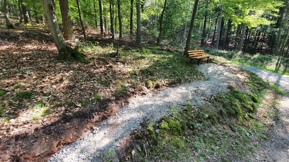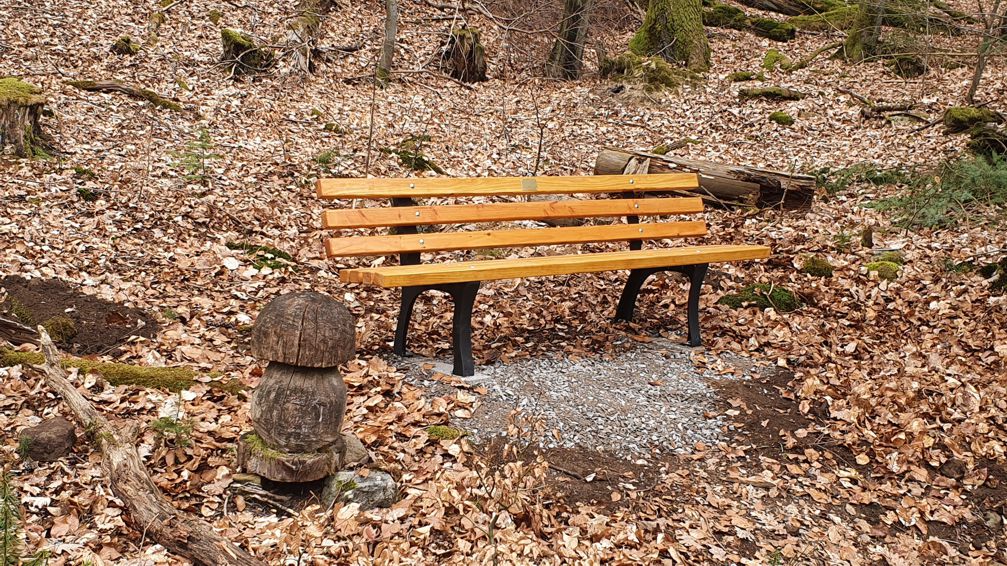 Die Bank bietet jetzt eine Rastmöglichkeit für Wanderfreunde in Richtung Neunkirchen am Potzberg, Gimsbach und Theisbergstegen. |