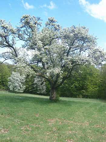 Oben: Alter Weinbirnenbaum zwischen Föckelberg und Mühlbach (Foto: J. Fickert).