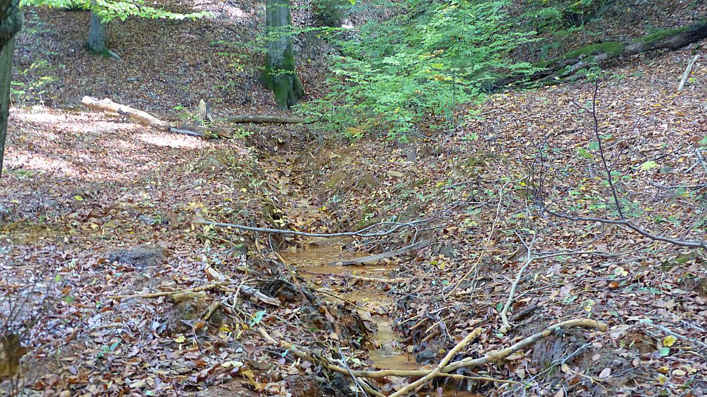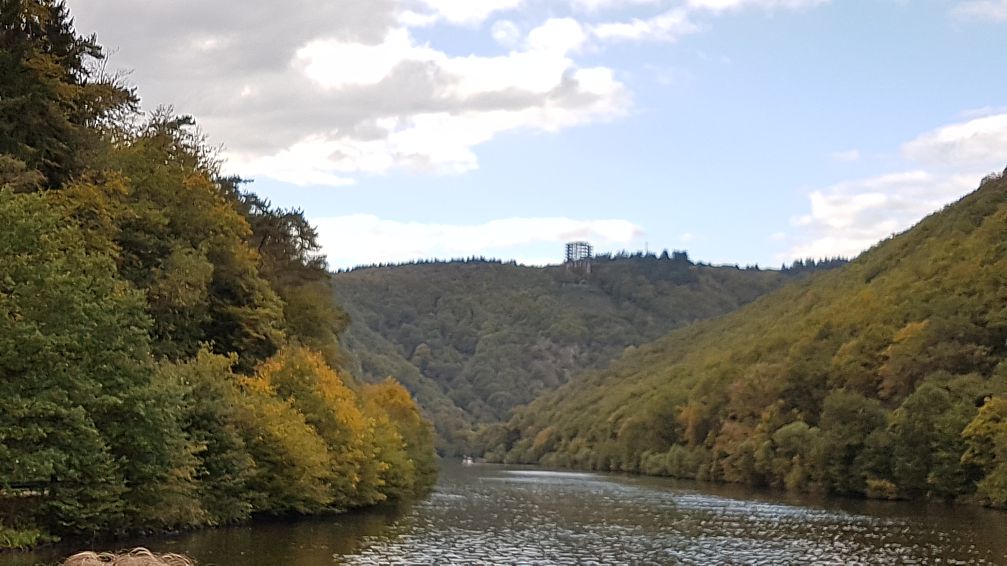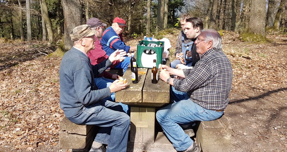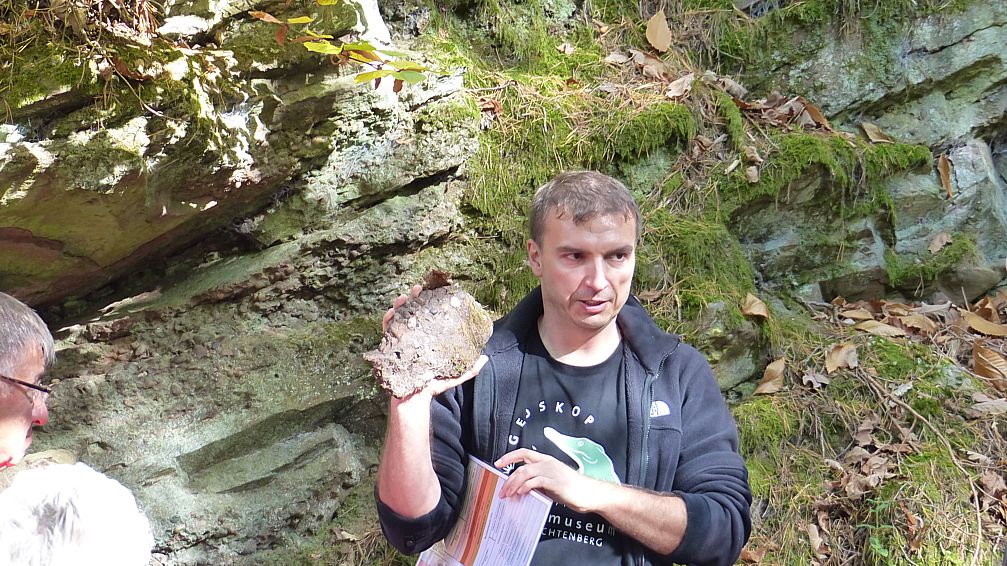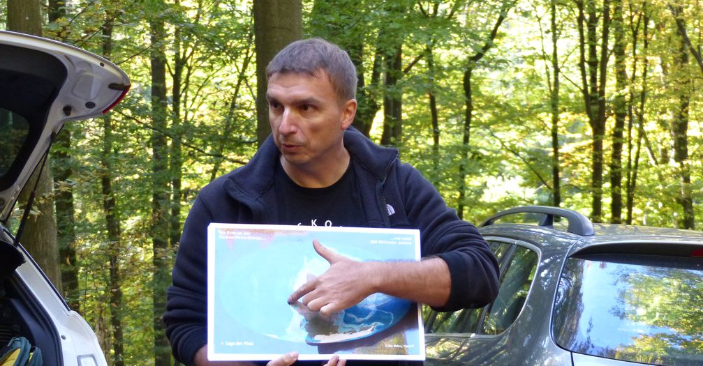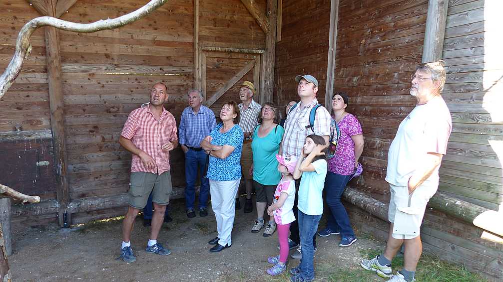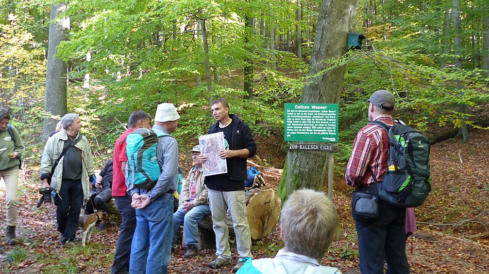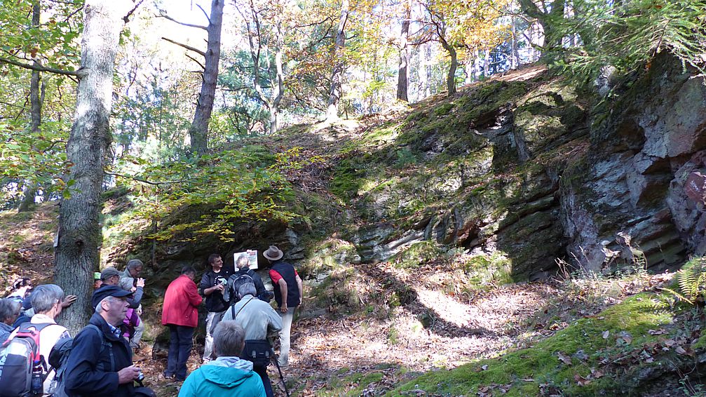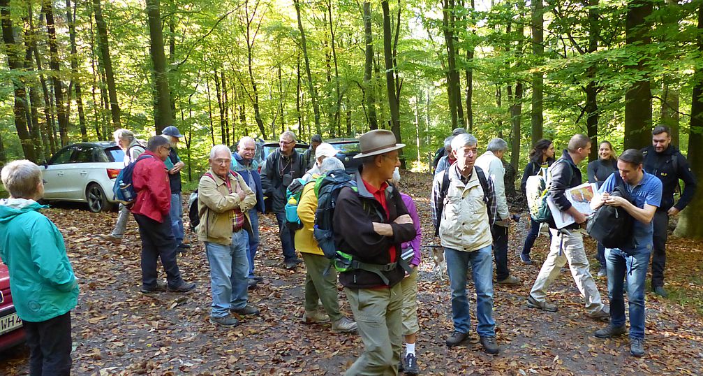 Zu Mittag wurde mit Börfink im Herzen des neuen Nationalparks Hunsrück Hochwald das zweite Ziel der Exkursion erreicht. Nachdem im dortigen Forellenhof Trauntal ein Mittagessen eingenommen worden war, übernahm Dr. Ernst Segatz die weitere Führung. Segatz ist Mitarbeiter der Forschungsanstalt für Waldökologie und Forstwirtschaft in Trippstadt und der Nationalparkverwaltung. Bei einer Wanderung rund um den Ortsteil Thranenweier, der sogenannten Inseltour, ging Segatz der Frage nach, wie Naturschutz in dem erst 2015 gegründeten Nationalpark gestaltet und entwickelt werden kann. Soll man die Natur sich völlig frei entfalten lassen oder muss der Mensch zumindest für eine Übergangsszeit regulierend eingreifen? Der Nationalpark ist mit ca. 11.000 ha nicht sehr groß, gehört zum größten Teil zu Rheinland-Pfalz und mit einem kleinen Teil zum Saarland. Er besitzt eine längliche Form, so dass er an manchen Stellen nur ca. 5 km breit ist, was für die Verfolgung des Naturschutzes nicht unbedingt förderlich ist.. Seine Gründung geschah nicht im luftleeren Raum, sondern war nur in Abstimmung mit den unterschiedlichsten Gruppen und Interessen möglich wie den Kommunen, dem Tourismus, den Jägern, der Forstwirtschaft und den privaten Holznutzern, um nur wenige zu nennen. Es versteht sich aber von selbst, dass der Naturschutz das vordringliche Ziel des Nationalparks ist. Kurz nach seiner Gründung ist es notwendig, früher vorgenommene schädliche Eingriffe des Menschen wie die Entwässerung von Mooren zu beseitigen, um den ursprünglichen naturnahen Zustand wiederherzustellen. In dieser Hinsicht ist der Nationalpark erst noch in der Entwicklung.