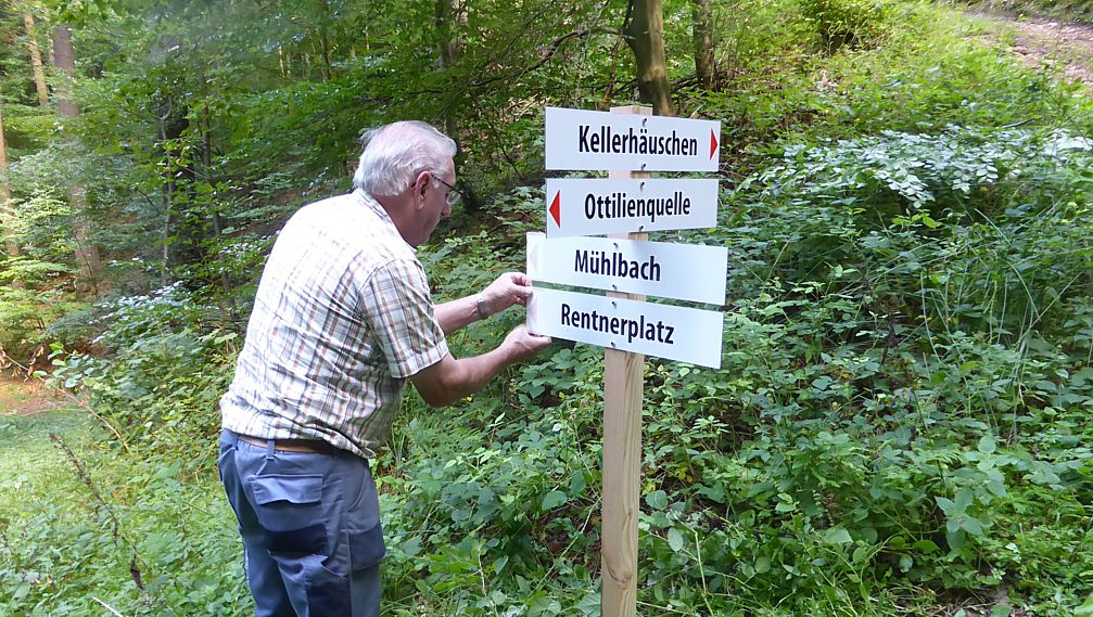 Während des Rundgangs veranschaulichte Segatz die vorgenommenen Naturschutzmaßnahmen an drei Beispielen. An einer Stelle fiel ein drastischer Kahlschlag von Fichten auf. Nicht das, was man sich unter einem Naturparadies vorstelle. Diese Baumart sei nicht typisch für die Region und im 18. und 19. Jahrhundert bevorzugt zur schnellen Holzgewinnung gepflanzt worden, erläuterte Segatz. Es gehe nicht darum, die Fichte auszurotten, sondern ihren Bestand auf ein vernünftiges Maß zu reduzieren. Mit der Zeit würde die Buche ihre Stelle übernehmen. Als Nächstes machte er auf eine Wiese mit Borstgras und gelb-orange blühender Arnika aufmerksam. Diese Berggräser profitierten von der früheren Nutzung der Wiese durch Landwirte. Wenn diese wegfalle, seien Pflegemaßnahmen notwendig, sonst verschwänden die wertvollen Pflanzen durch Verbuschung.