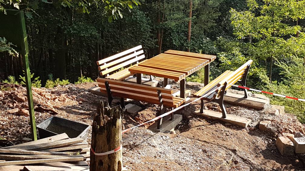 Noch im Frühjahr sah es dort so aus. ![]() ![]() Die Sitzgruppe zwischen Buchwaldhütte und Altenburg war schon etwas in die Jahre gekommen ...