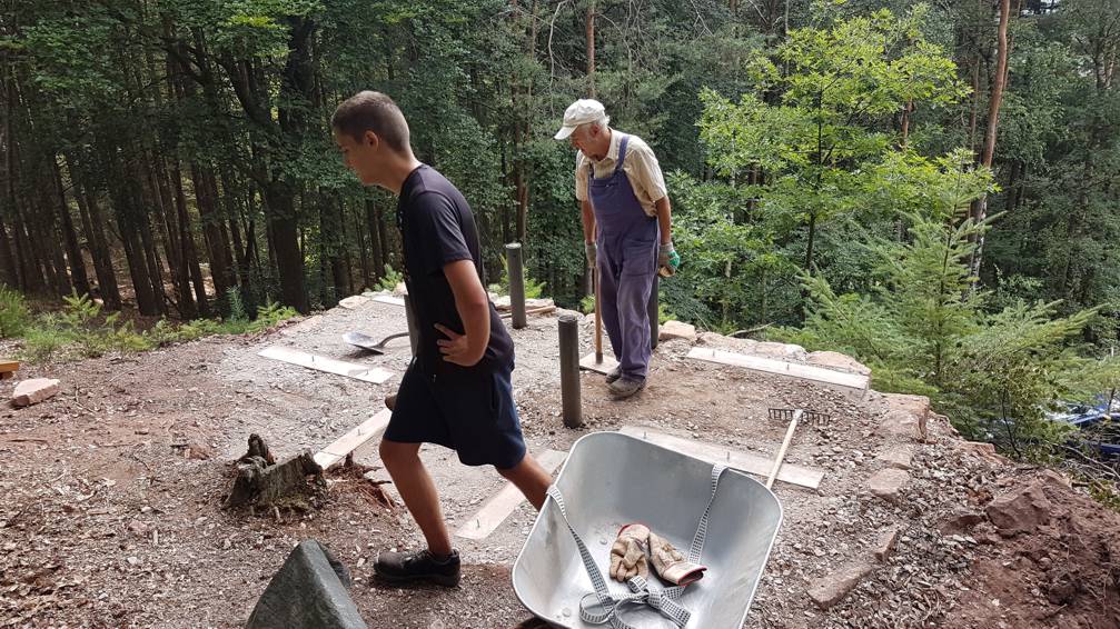 Besonderer Dank an Lukas und Ernst Niebergall ohne deren unermüdlichen Einsatz die Baumaßnahme noch lange nicht fertig wäre. Allen Helfern, die Materialien organisiert haben oder Fahrdienste übernommen haben, sei ebenfalls ausdrücklich gedankt. Dank auch an die Ortsgemeinde Theisbergstegen für die materielle Unterstützung und dem Pfälzerwaldverein Theisbergstegen/Godelhausen für eine finanzielle Beteiligung an den Materialkosten. |