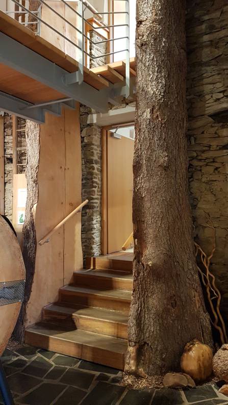 Den Eingang ins Museum bildet ein gespalteter Baumstamm.