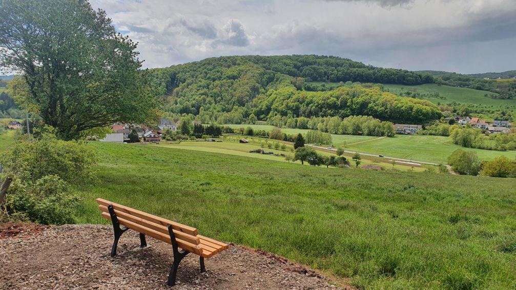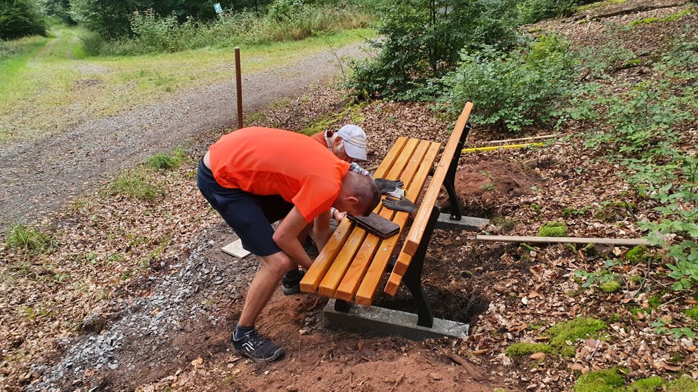 Die Bank bietet jetzt eine Rastmöglichkeit für Wanderfreunde in Richtung Neunkirchen am Potzberg, Gimsbach und Theisbergstegen. |