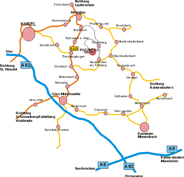 Detaillierter Staßenplan um den Potzberg