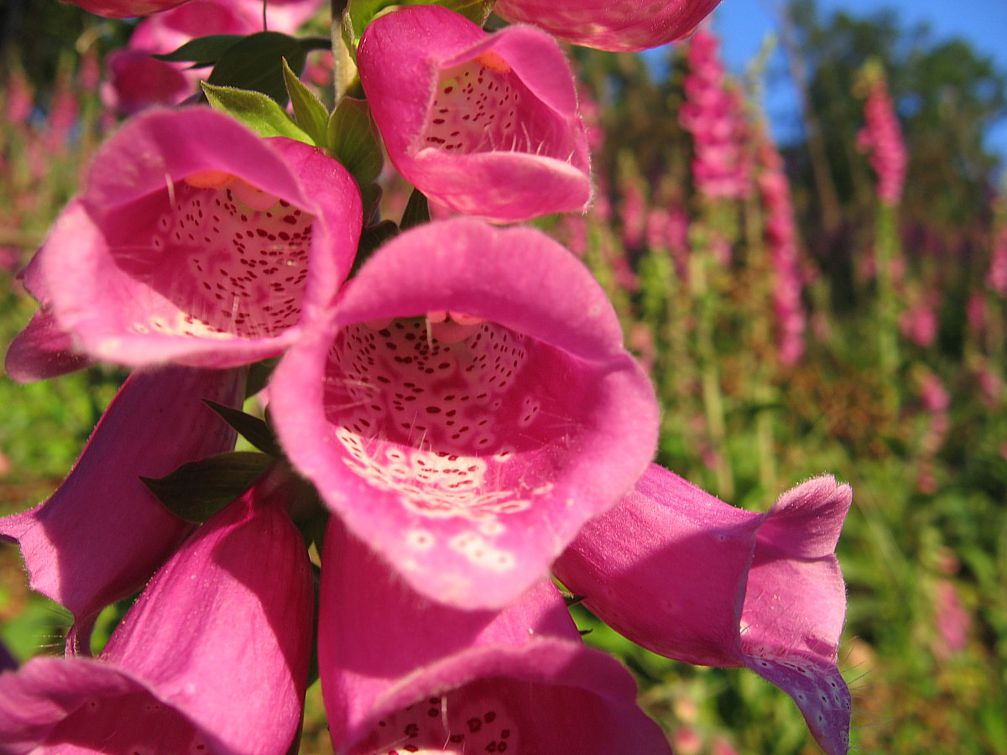 Eine typische Charakterpflanze des Potzberges ist der Rote Fingerhut (Digitalis purpurea), der zu den Braunwurzgewächsen gehört und durch seine 3-5 cm langen purpurroten und fingerhutförmigen Blüten auffällt. Diese sind in ihrem Innern behaart und haben dunkelrote, weiß umrandete Flecken. Die Pflanze, die 30-150 cm hoch wird, blüht von Juni bis August. Die Grundblätter sind rosettenförmig angeordnet. Typische Standorte der Pflanze sind Waldränder und Lichtungen, Kahlschläge und lichte Wälder mit kalkarmen, sandigem und stickstoffhaltigem Lehmboden. Wie der Hasenlattich am Potzberg ist es eine Zeigerpflanze für Böden mit sauerer Tendenz. Der zweijährige Fingerhut steht oft zerstreut in lockeren Beständen. Die Bestäubung der Blüten wird durch Hummeln besorgt.