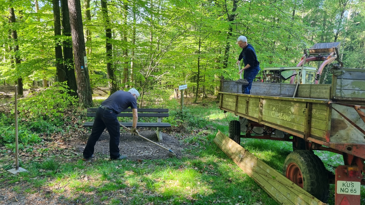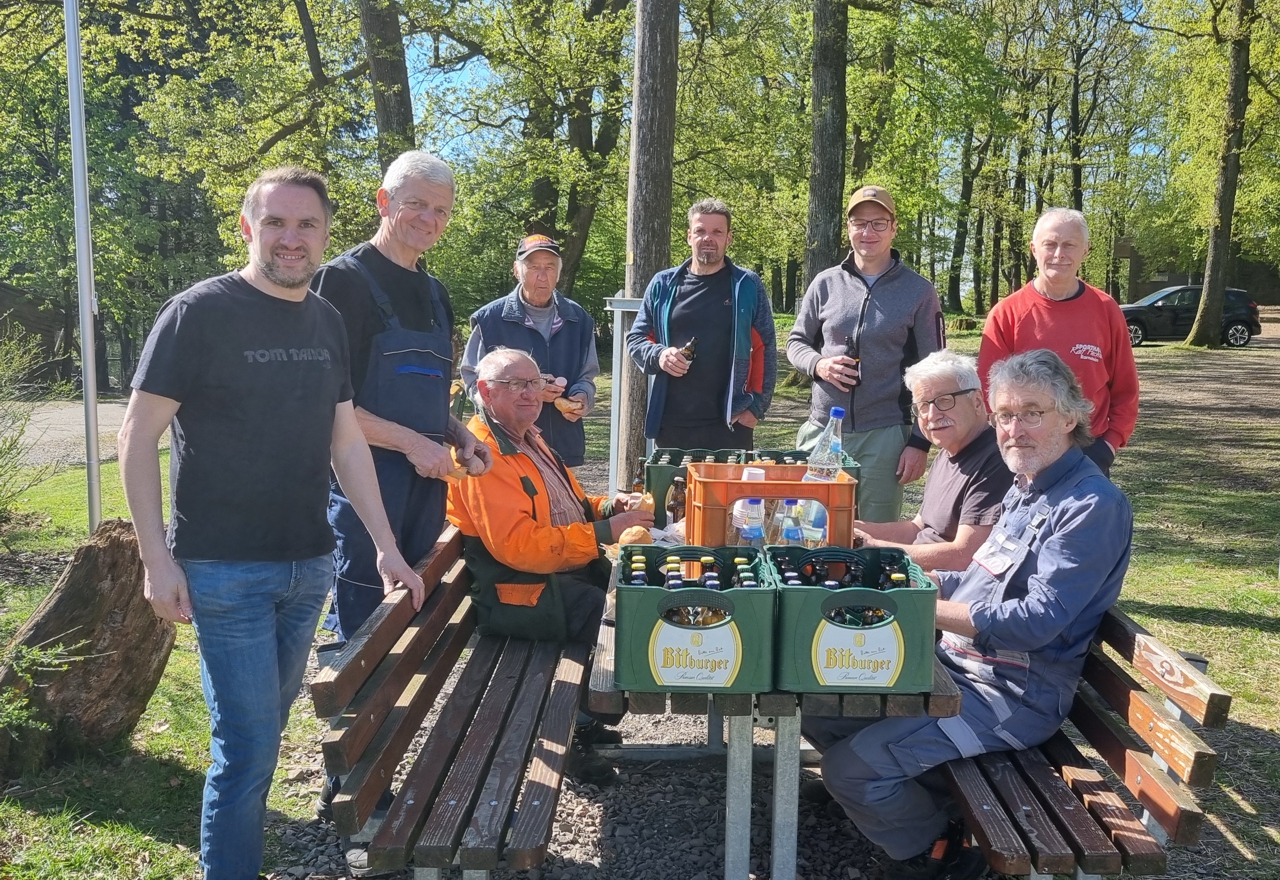 Die Bank ist wieder nutzbar, muss aber bald mal ersetzt werden. Nach getaner Arbeit gab es auch noch ein kühles Getränk und Weck und Wurst. Der Verein bedankt sich bei allen Helfern, vor allem für die Bereitstellung der Maschinen und Werkzeuge.