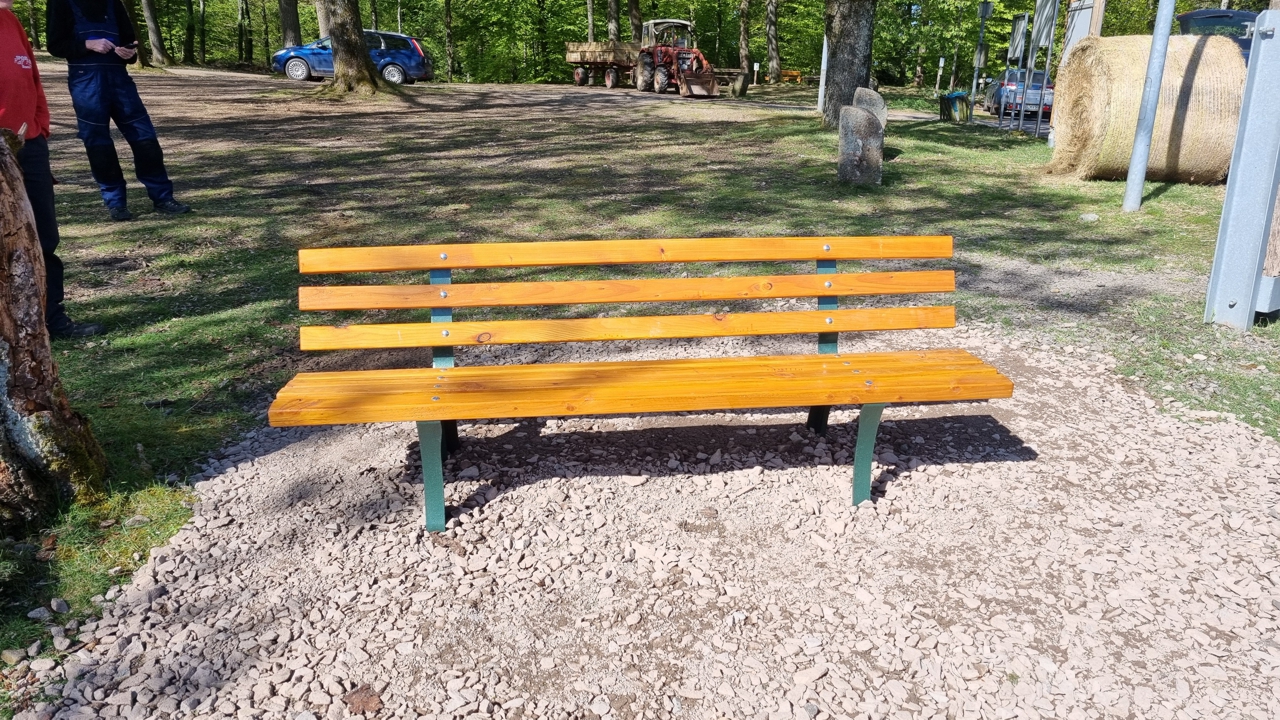 Bei der Gelegenheit wurde der Bank auch gleich ein neuer Anstrich verpasst.