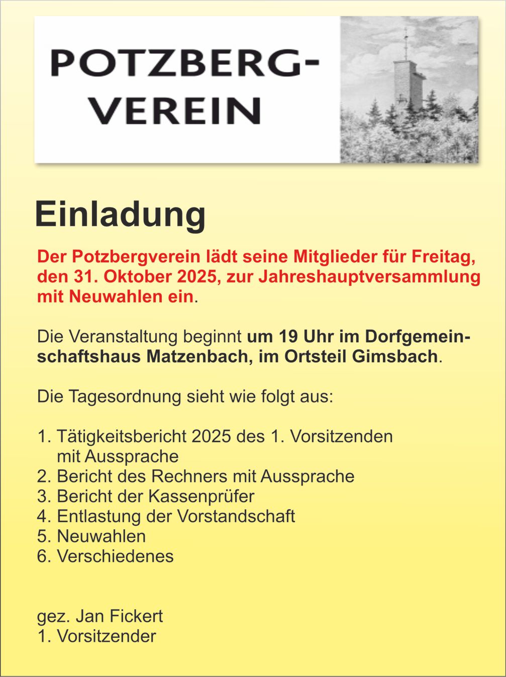 Der Potzbergverein bedankt sich bei allen Helfern und ganz besonders bei der Ortsgemeinde Föckelberg.